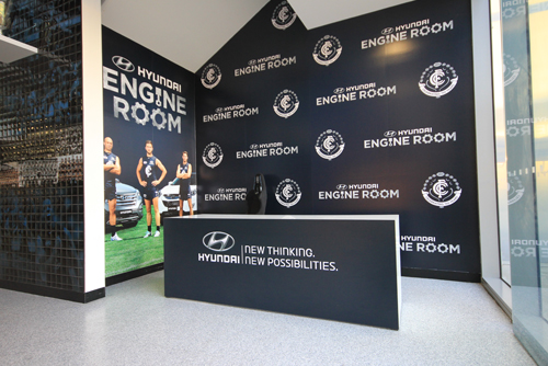 We also designed custom wallpapers; a 'Greatest Marks' wall with related commentary and game details, and the 'Hyundai Engine Room', which is a mock media room for fans to take photos in their holy grail.
